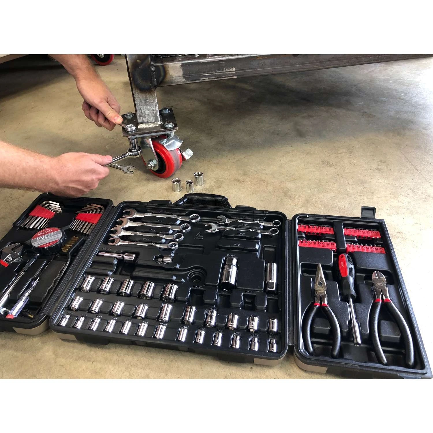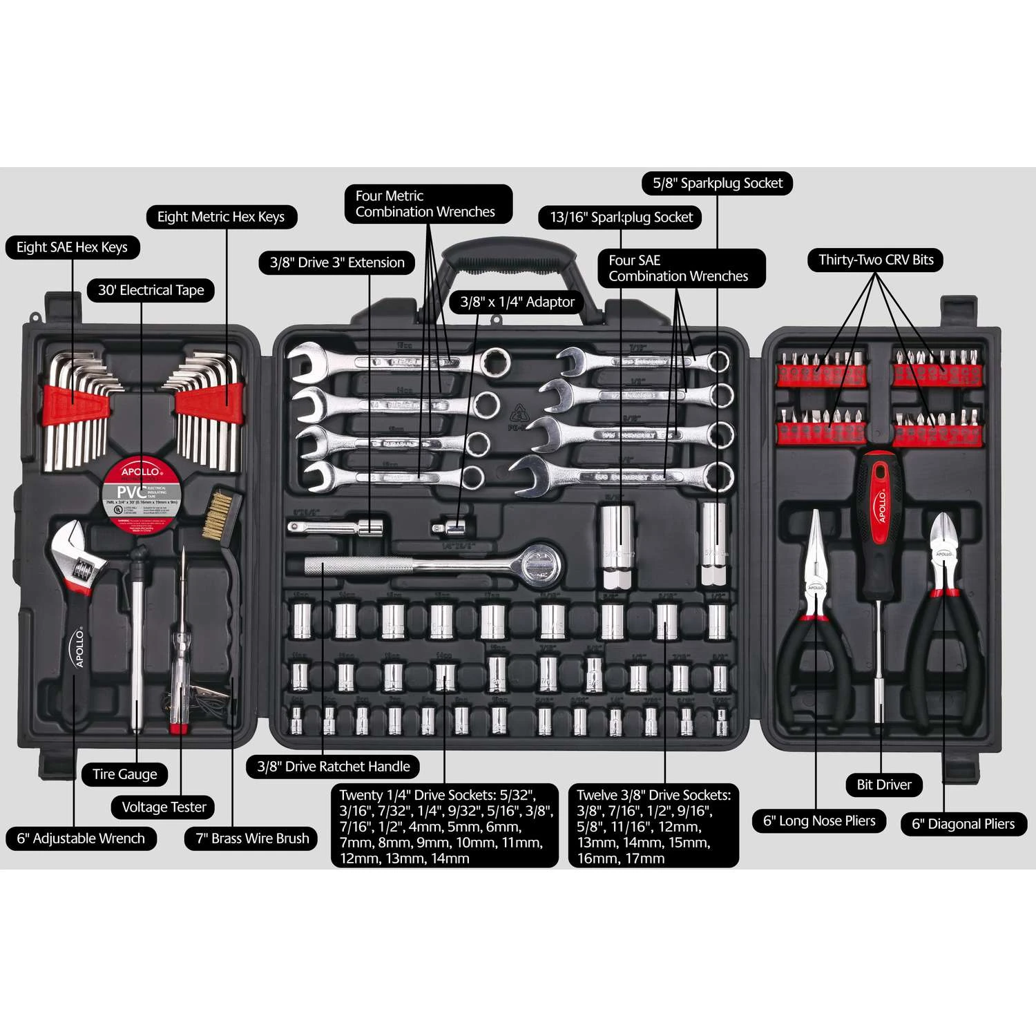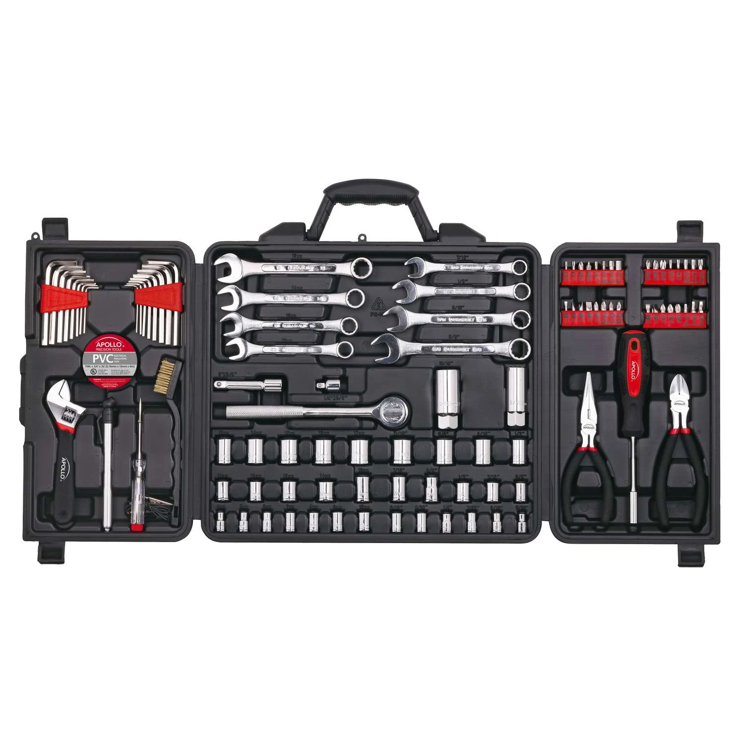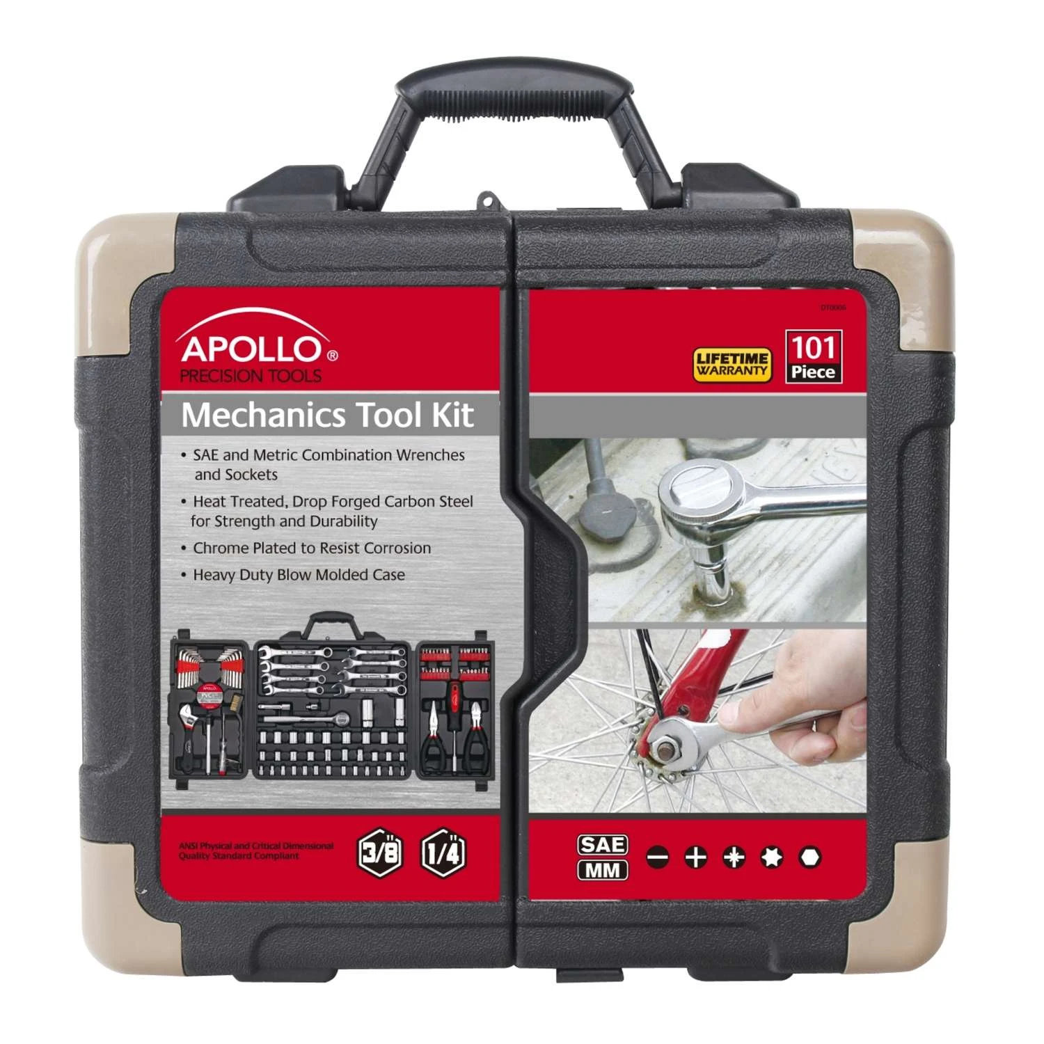Apollo Tools 1 In. X 1/4 And 3/8 In. Drive Metric And SAE 6 Point Mechanic’s Tool Set 101 Pc