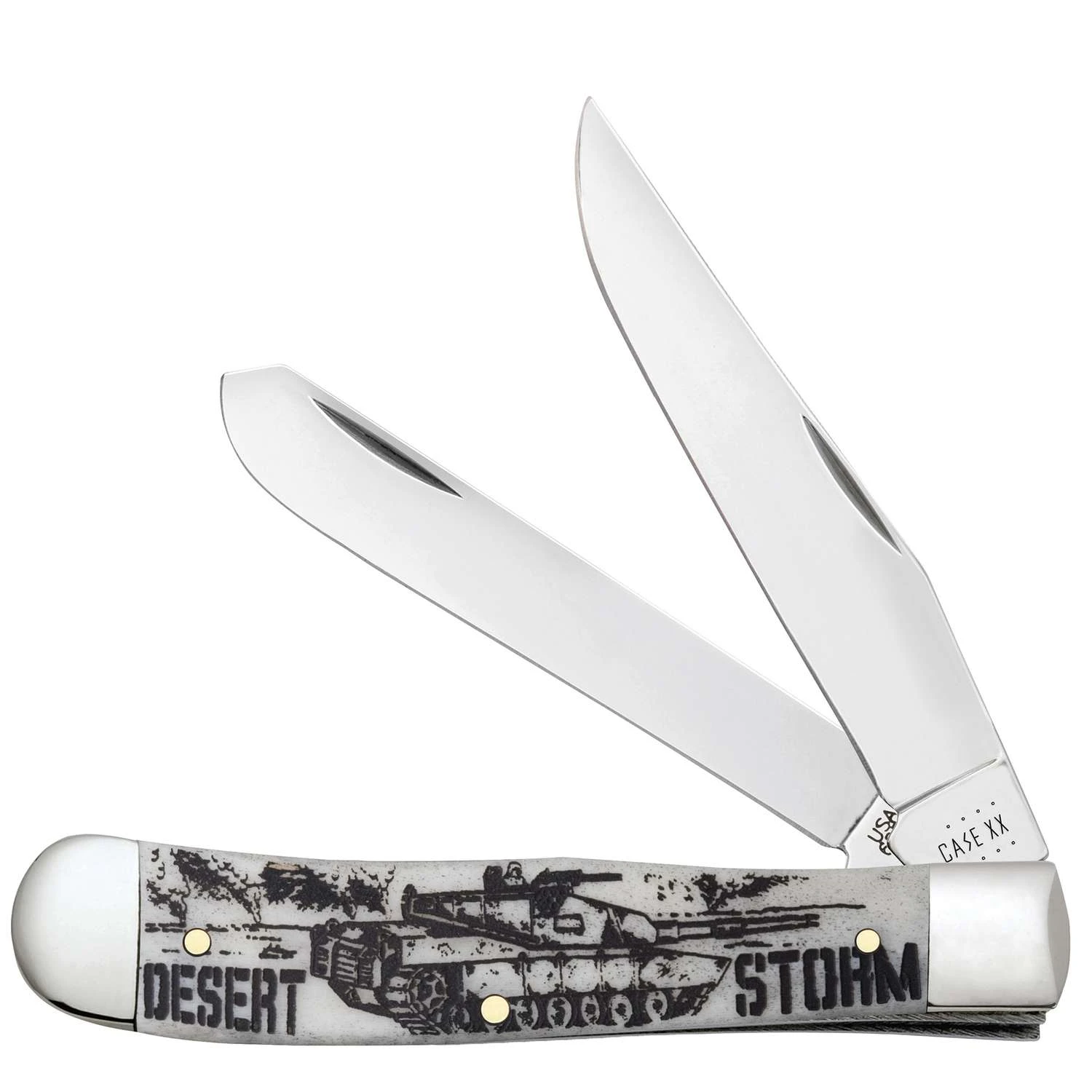 This popular Trapper collection showcases our nation’s finest work during some of our country’s most defining moments. Each knife features a carefully engraved scene on the handle. The Trapper gets its name from the consumer it was designed for. Because of its basic trapping and skinning blades and its light weight, it is a must have knife for those who trap small game. It is a jack knife with two full length blades, a slender clip and a long spey. The Clip blade is commonly used as a multi-purpose blade and preferred for detail work while the spey blade is commonly used as an all-purpose blade.The Clip blade is extremely versatile – just the thing for those everyday tasks at work or around the houseWith a sharp point for piercing, the shape allows for better control of the cutting edgeThe Spey blade was a vital tool for farmers and ranchers who would use it when castrating livestockFavored tool for skinning gameConstructed with Case Tru-Sharp stainless steel which is a special high-carbon steel that helps the blades hold an edge longer than conventional steelOffers extraordinary blade strength and corrosion resistance