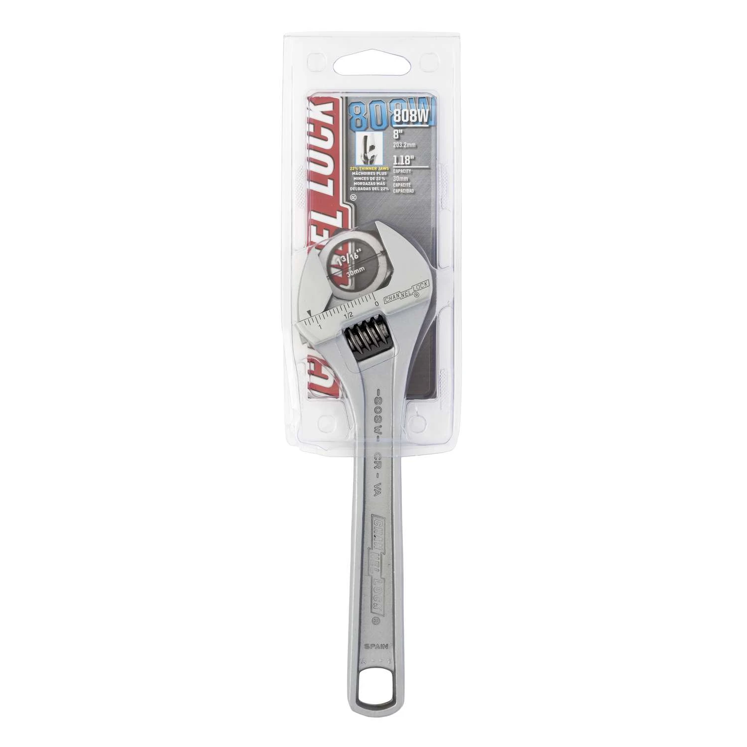 Channellock adjustable wrenches have endless amount of uses. Strong, reliable and versatile- it’s exactly what America has come to expect from Channellock.Longer jaws grip better, thinner jaws give greater access in tight spaces4 thread knurl and non-protruding jaws provide greater capacity, minimal head width improves performance in confined spacesMeasurement scales (in. on front mm on reverse) are handy for sizing nuts, pipe and tube diametersChrome vanadium steel constructionGreater jaw capacity supports larger nuts and bolts