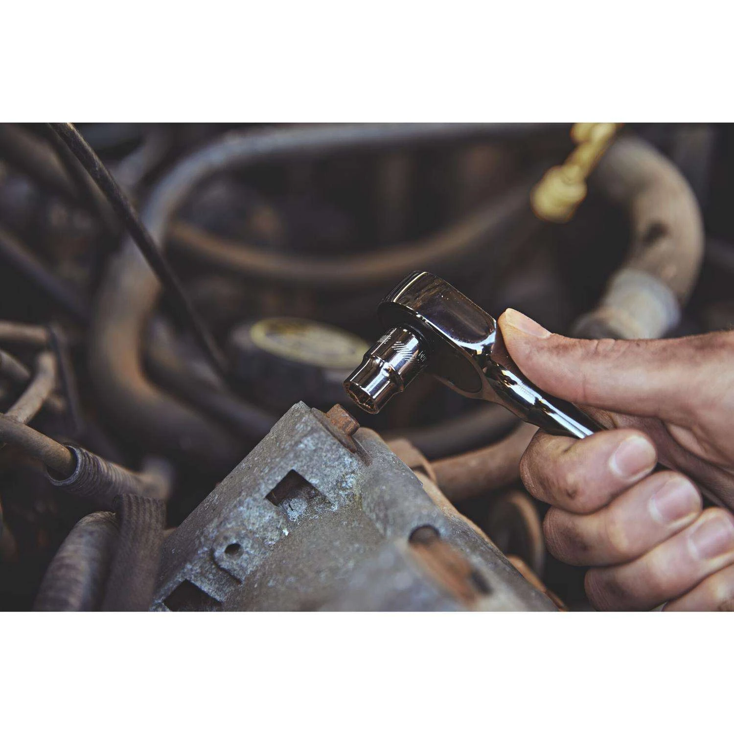 Access hard-to-reach fasteners with this 3/8 in. Drive 180T OVERDRIVE Ratchet that features 2.5X better access in tight areas. With a quick-release lever and comfortable handle, this reliable ratchet offers one-handed operation for all-day jobs.2.5X BETTER ACCESS – Reach compact areas with a 180-Tooth Dual-Pawl Mechanism that provides 2.5X better access for tight turns.ONE-HANDED OPERATION – Keep one hand free for work with a quick-release lever and reversing feature.DURABLE DESIGN – Take on harsh elements with an enhanced dual-pawl mechanism that increases points of engagement.COMFORTABLE USE – Work long hours with an ergonomically designed comfort-handle.SLEEK, MODERN FINISH – Get stellar rust resistance with a gunmetal-chrome finish.MEETS OR EXCEEDS ASME SPECIFICATIONS – These products are engineered to meet rigorous standards and satisfy the most demanding users.