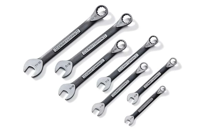 Craftsman 7-piece universal wrench sets come in handy for all sorts of projects around the house and on a job site. Each wrench has a universal tooth design that can grip six different nut and bolt sizes. With their 15 degree angled wrench heads, you have ample space to get into tight spots and work stubborn nuts and bolts loose without worrying about scraping your knuckles. The wrenches also have reinforced open ends to decrease tip spreading and fastener rounding in heavy pressure situations. Craftsman wrench sets boast a rounded, thick wrench beam to ensure a comfortable, strong grip. Each wrench has a high contrast marking that makes it easy to spot the right size when you need it.Tough alloyed steel construction is built to last.Universal tooth design grips six different types of nuts and bolts: hex 6 pt., square 4 pt., hex 12 pt., external torx, spline and partially rounded hex 6 pt.Rugged open end delivers tons of torque and grabs bolts fast.Clear markings make the right wrench easy to findSizes include 5/16 in., 3/8 in., 7/16 in., 1/2 in., 9/16 in., 5/8 in. and 11/16 in.