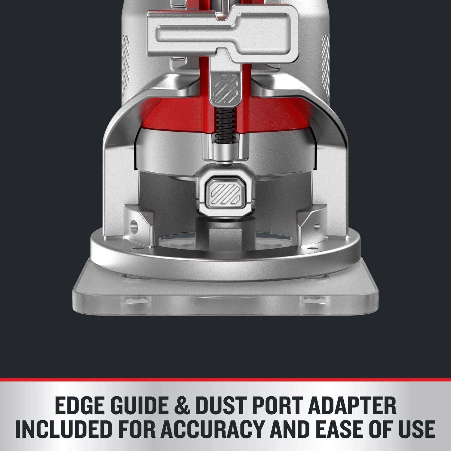 This lightweight Shell Craftsman V20 Brushless RP Router features a slim profile design and a brushless motor to provide the user with a powerful, compact solution for all fixed-base routing applications. The variable-speed dial allows the user to select from 7 speeds ranging from 16,000-30,000 RPM for better control and versatility with various applications. The CMCW400 also includes both macro and micro depth adjust features, allowing the user the make quick and precise depth adjustments. The LED light helps to illuminate work surfaces and provide superior bit visibility while the included edge guide assists the user in skillfully carrying out applications where accuracy matters.Variable speed dial – allows user to control speed from 16000-30 000 rpm for various applicationsBrushless motor – powerful motor provides greater performance and longer runtimeDepth adjustment knob – allows for fast and easy height adjustments
