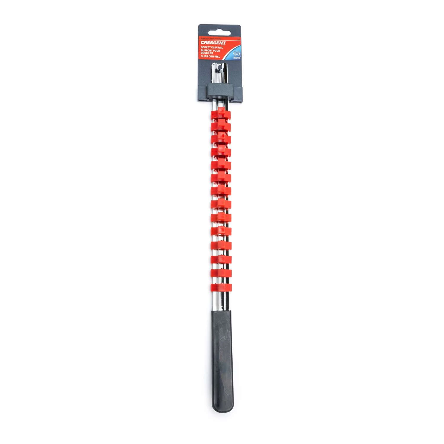 This Crescent 3/8 inch drive socket rail is specially formulated and heat-treated for high strength and superior resistance to abrasion and corrosion.Perfect to store organize and easily find all your socketsDrilled at end for easy attachment to wall, workbench or drawerExceeds ASME specification B107.10M