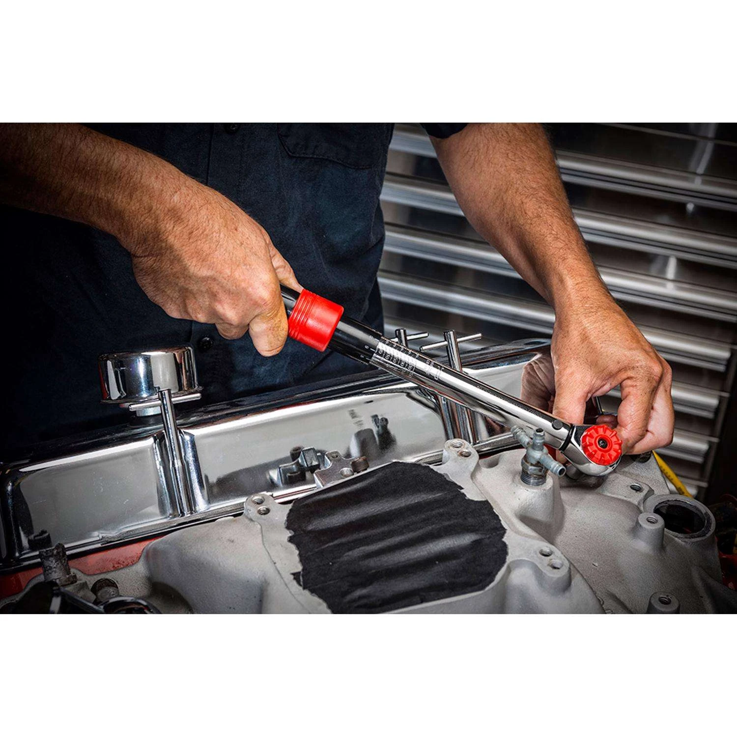 3/8 inch drive micrometer torque wrench provides fast, accurate tightening fit for metalworking, plumbing and other industrial jobs. Since it’s easily transportable, this tool also has a rubber bumper on the head for protection.Meets or exceeds ASME specificationsNon-slip hand grip is comfortable and adjusts quicklyReversible 45-tooth round ratcheting headAccuracy within 4% of specified torque targetClockwise direction marking on shaft simplifies calibrationSAE and metric scales on the hand grip and shaft are large and easy to readSlide-back adjustment collar lets you set the target torque quickly and easilyAudible signal alerts you when you reach the target torqueBright, full polish chrome finish easily wipes clean and resists corrosion