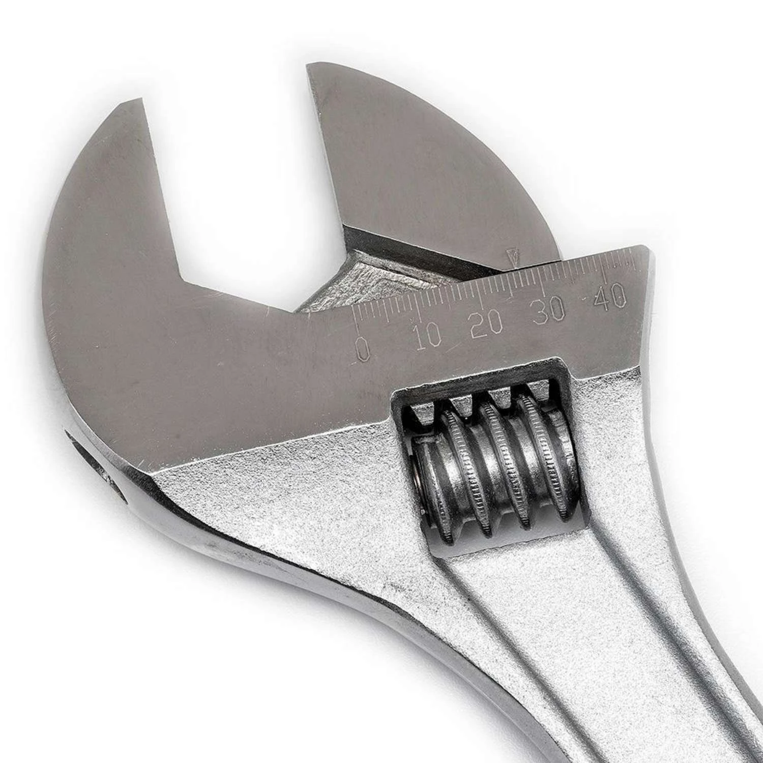 Crescent Adjustable Wrenches feature a large knurl for easy adjustment and a tight jaw fit. Its hex jaw design helps reduce slippage and tightly grips the fastener for solid, secure operation, while the corrosion-resistant chrome finish helps prevent rusting. A wide handle design provides comfort and reduces fatigue during extended use, ideal for both pros and do-it-yourself enthusiasts.The original adjustable wrench, made by the world-famous Crescent brandLaser etched scale in both SAE Standard and Metric sizes allows easy identificationLarger knurl for easy adjustment ensures a tight jaw fitHex jaw design reduces slippage by gripping fasteners tightlyHeat-treated forged alloy steel for toughness and durabilityTension spring stabilizes jaw and allows easy knurl adjustmentChrome plated finish wipes clean easily and resists rust or corrosionPolished head and satin finished handle “Large capacity 1-11/16″, 43mm jaw fits a wide range of fastener sizes”