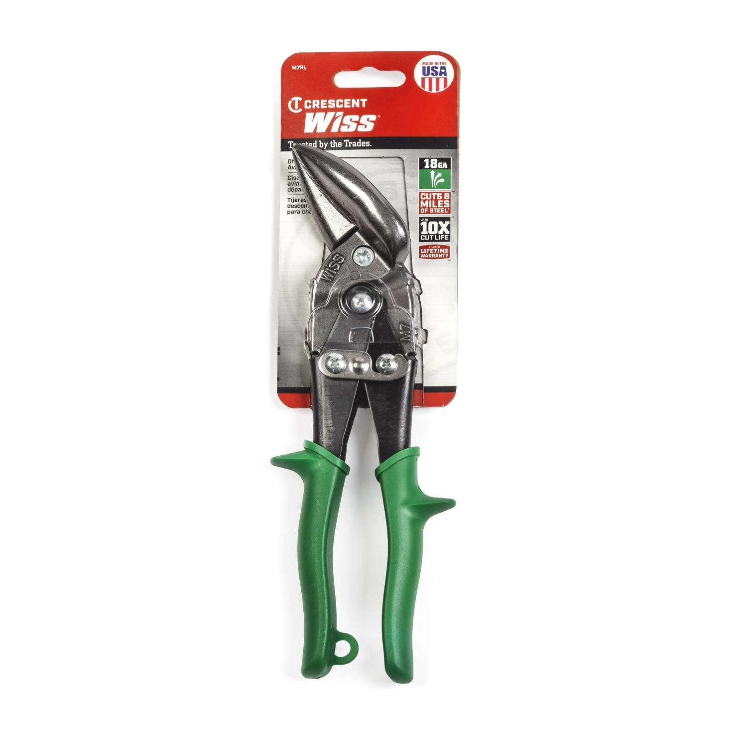 Crescent Wiss Metal Master Right and Straight Cut Aviation Snips are capable of cutting right arcs and straight lines. The CNC-serrated blades tightly hold and aggressively cut material, while the self-opening spring action delivers a smooth, low-effort feed. Non-slip cushion grips provide superior control, and tough molybdenum steel blades have exceptional durability and long blade life. Cuts up to 18 gauge carbon steel.Precision cast blades with automated CNC ground edges and serrationsCuts low carbon, cold-rolled 18 gauge steelNon-slip, serrated jaws of tough molybdenum steel hold material firmly and spread cutting force uniformly across blade edgeOffset blades keep hands clear of metalCuts straight lines and right arcsHigh-speed vibratory finish provides excellent blade durability and a consistent, high-end aestheticNon-slip comfort grips provide superior control and comfortNon-Slip Textured Grips and Safety Latch for Superior ControlCompound cutting action handles materials as hard as 18 gauge carbon steelEffortless cutting and superior durability from the valve-grade steel return spring