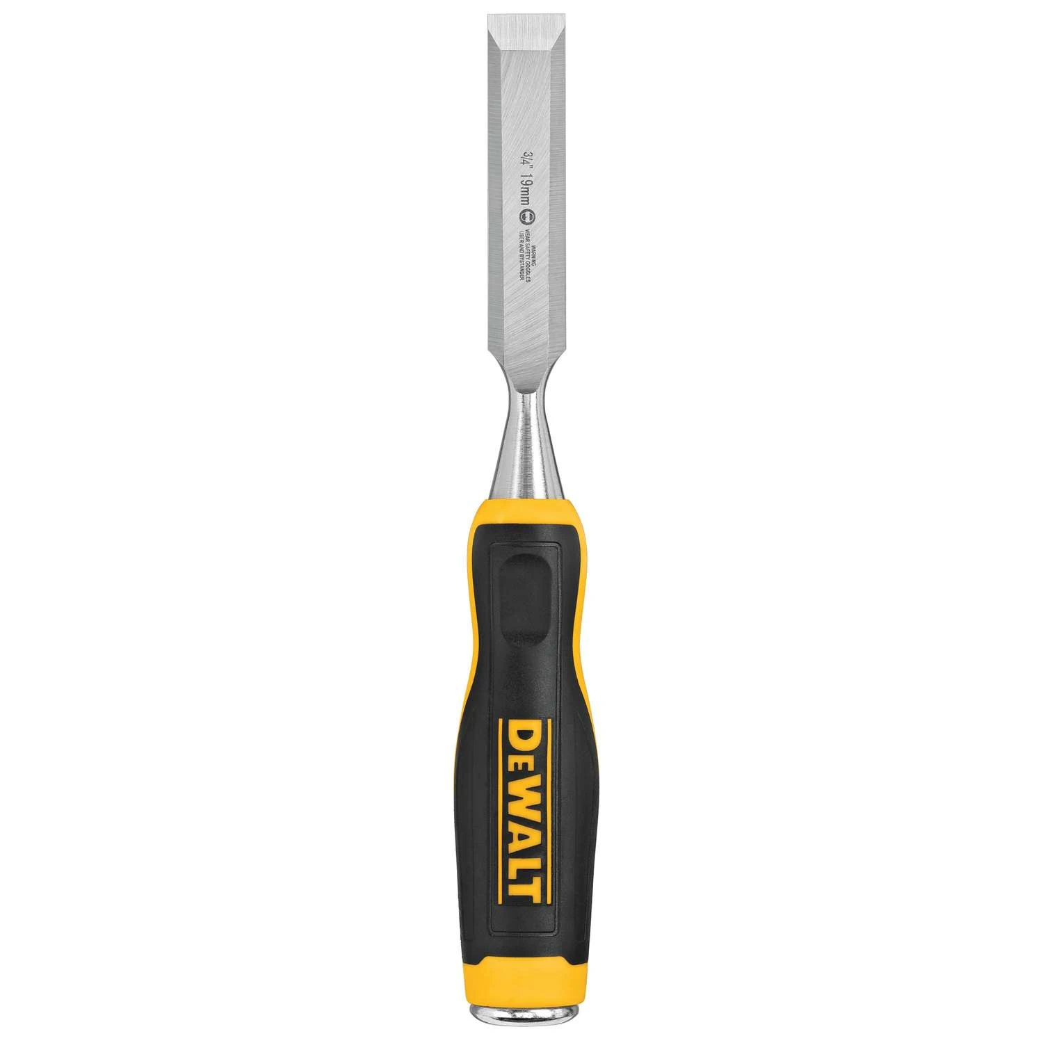 The DeWalt 3/4 in. wood chisel is designed with the professional in mind. The handle is ergonomically constructed for comfort, with a durable metal cap for striking and driving the chisel blade. The carbon steel blade is tempered and hardened to ensure a long-lasting edge and lacquered to protect against corrosion.Tempered, carbon steel bladeDurable construction with lacquered bladeThick metal strike cap with flat surface for effective strikeLightweight design with ergonomic handle