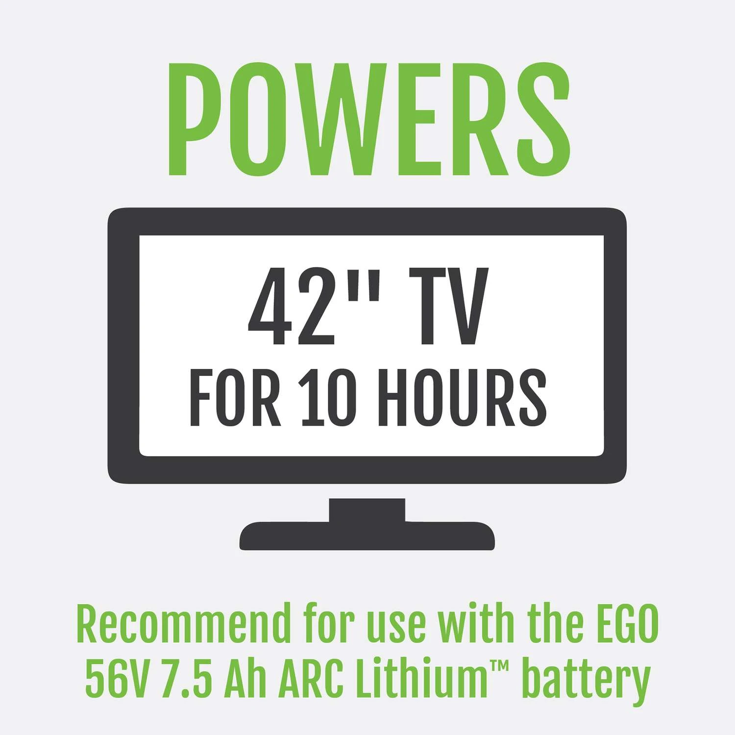 Introducing the Nexus Escape. Power when you want it, power when you need it. Built tough with a 120-Volt AC power outlet to power anything from a tablet while out and about, your lamps in the house, even your TV in a power outage.2 USB ports to power phones, tablets, laptops and more120V AC power outlet to power tvs, routers, lamps, speakers and morePower TVs, tablets and moreWorks with all EGO batteriesPower inverter only – battery and charger not includedBare tool – battery and charger sold separately