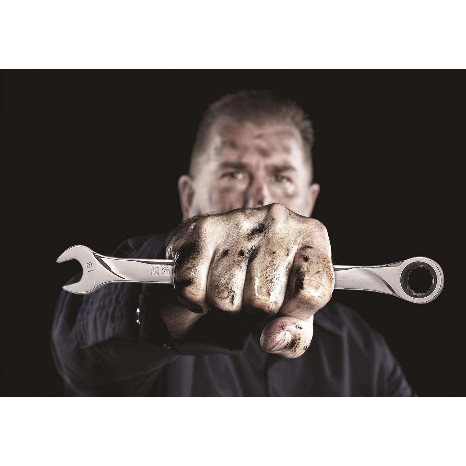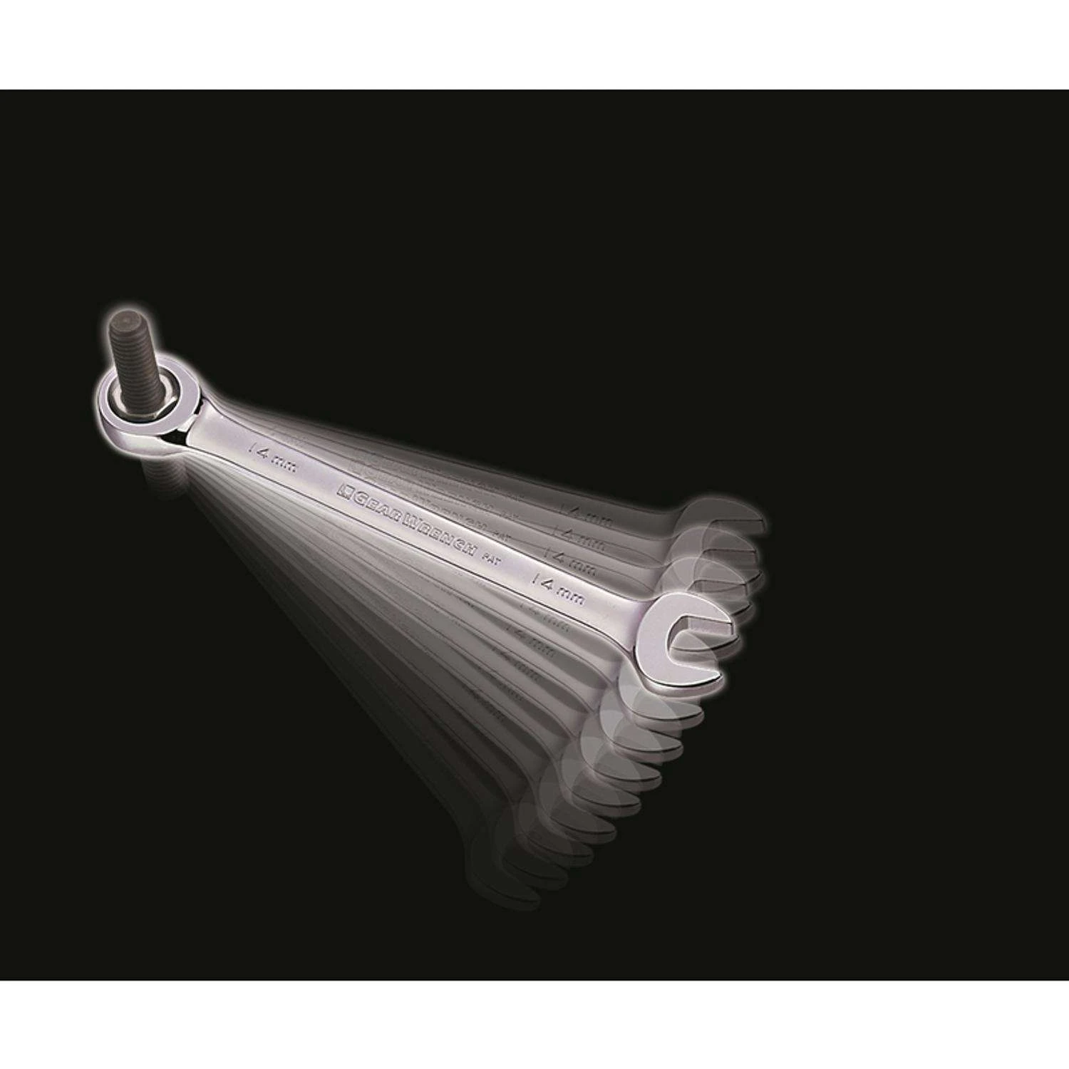 GEARWRENCH Original ratcheting wrenches combine the speed of a ratchet with the access and control of a wrench. They offer the ease of 5 degrees of movement to turn fasteners, versus 30 degrees on standard combination wrenches. The small ratcheting box end head design enables access to tight spots where a ratchet won’t fit. The open end allows for easier access on tough to reach spots, making jobs go faster and easier. This set is a great addition to any mechanic tools collection.72 tooth ratcheting box end needs a minimal 5 to move fastenersOff-corner loading design on box end provides better grip and reduces fastener roundingThin head and beam provide greater access in confined work areasSize conveniently stamped on both ends of the beam for quick identificationManufactured from alloy steel for better strength and longer tool lifeBright, full polish chrome finish easily wipes clean and resists corrosionMeets or exceeds ASME and ANSI specifications