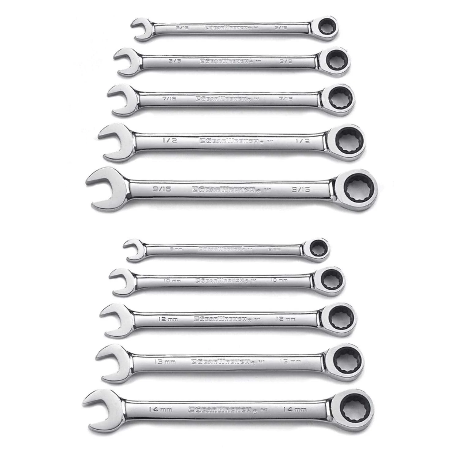 GEARWRENCH 12 Point Metric And SAE Ratcheting Combination Wrench Set 10 Pc