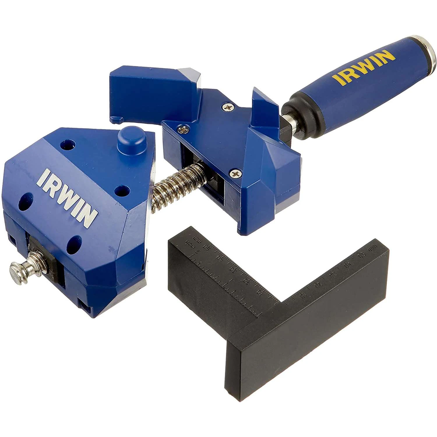 This Irwin Angle Clamp is designed to hold material up to 3 inches thick using a 90 degree angle. Convenient when an angle clamp is needed.Composite plastic body and steel screwsHolds up to 200 pounds of pressureIdeal for holding larger corner items and crown molding