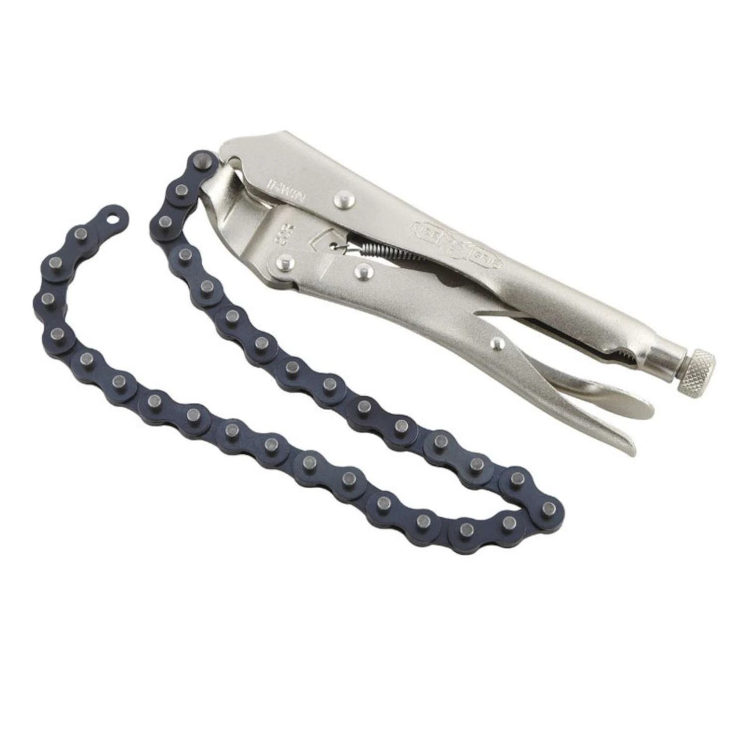 IRWIN® VISE-GRIP® Original Locking Wrench Features high-grade heat-treated alloy steel for maximum toughness and durabilityChain holds and locks around any shape or sizeIdeal for awkwardly shaped piecesTurn screw to adjust pressure and fit work. Stays adjusted for repetitive useConstructed of high-grade heat-treated alloy steel for maximum toughness and durabilityGuarded release trigger quickly unlocks and protects from accidental release9 in. size18 in. jaw adjustment