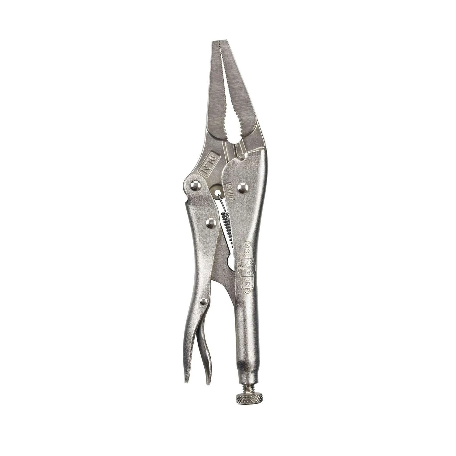 Grip-sure jaw with heat-hardened teeth allows you to secure materials from almost any angle. Classic trigger mechanism simplifies locking-down and releasing objects.Long, straight nose provides easy access in narrow, hard-to-reach places. Ideal for precision work and hobbies, includes convenient wire cutterIdeal for tightening, clamping, twisting and turningTurn screw to adjust pressure and fit work. Stays adjusted for repetitive useConstructed of high-grade heat-treated alloy steel for maximum toughness and durabilityHardened teeth are designed to grip from any angle