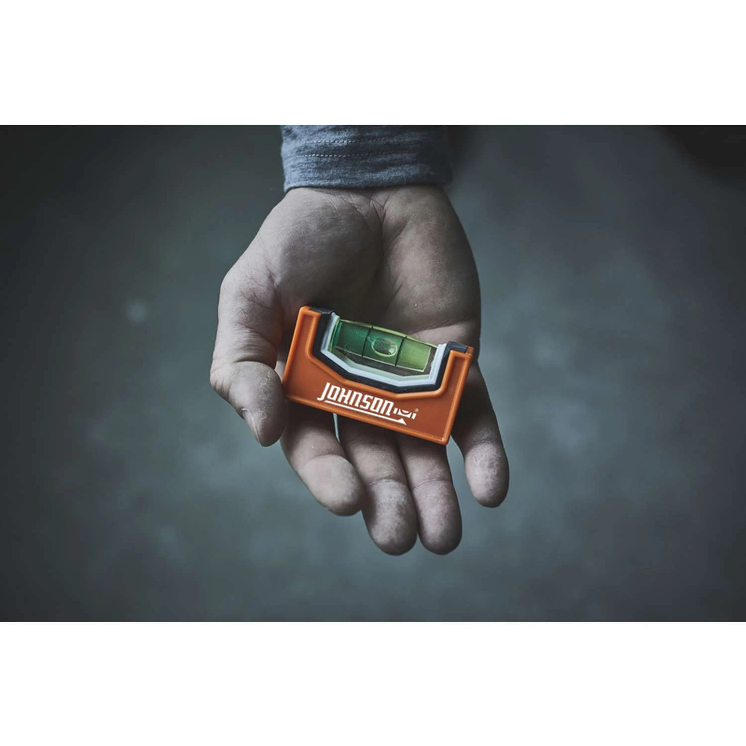 Check plumb or level accurately and conveniently even in tight spaces with Johnson Level’s 1721P Pocket Level. Its compact yet heavy-duty design makes it the perfect choice when you’re working in tight jobsite areas. It fits conveniently in your pocket, utility drawer or tool box and can be worn on your belt using the included belt holster, ensuring it’s on hand when you need it. The level’s solid curved block SurroundView® vial reflects ambient light in dim environments and is oversized for maximum readability. This level is also equipped with rare earth magnets that hold to flat or round ferrous metal surfaces for convenient, hands-free use.Solid curved block vial with 320 visibilityPowerful encapsulated GripTight rare earth magnets secure level to ferrous metal surfacesReads plumb on side edgeIdeal for use in tight spacesIncludes belt holster