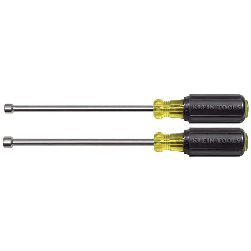 From Klein Tools, the 2-piece magnetic nut driver set provides a versatile selection of the most popular nut drivers. Klein’s exclusive design makes these nut drivers comfortable to use for a wide variety of applications. Klein has the nut drivers professionals demand to get the job done with comfort and ease of use.General purpose selection of the most frequently used nut driversIncludes two nut drivers (Cat. No. 646-1/4M and 646-5/16M)Full-hollow shaft design with Rare Earth magnetic tip facilitates work on bolt applicationsHandle end is color-coded for easy identificationInternal flanges provide solid, twist-resistant shank anchorCushion-Grip handle allows for greater torque and comfort