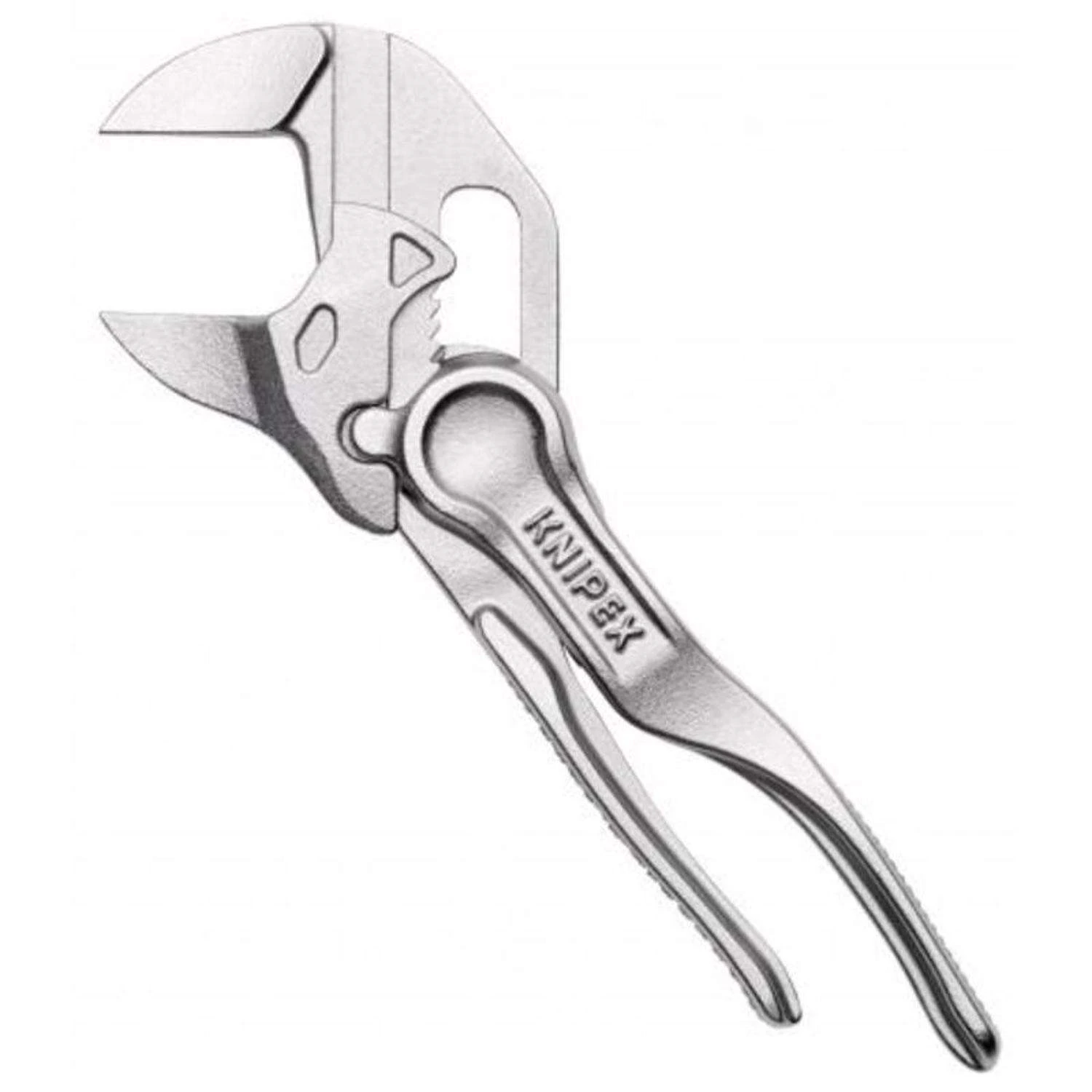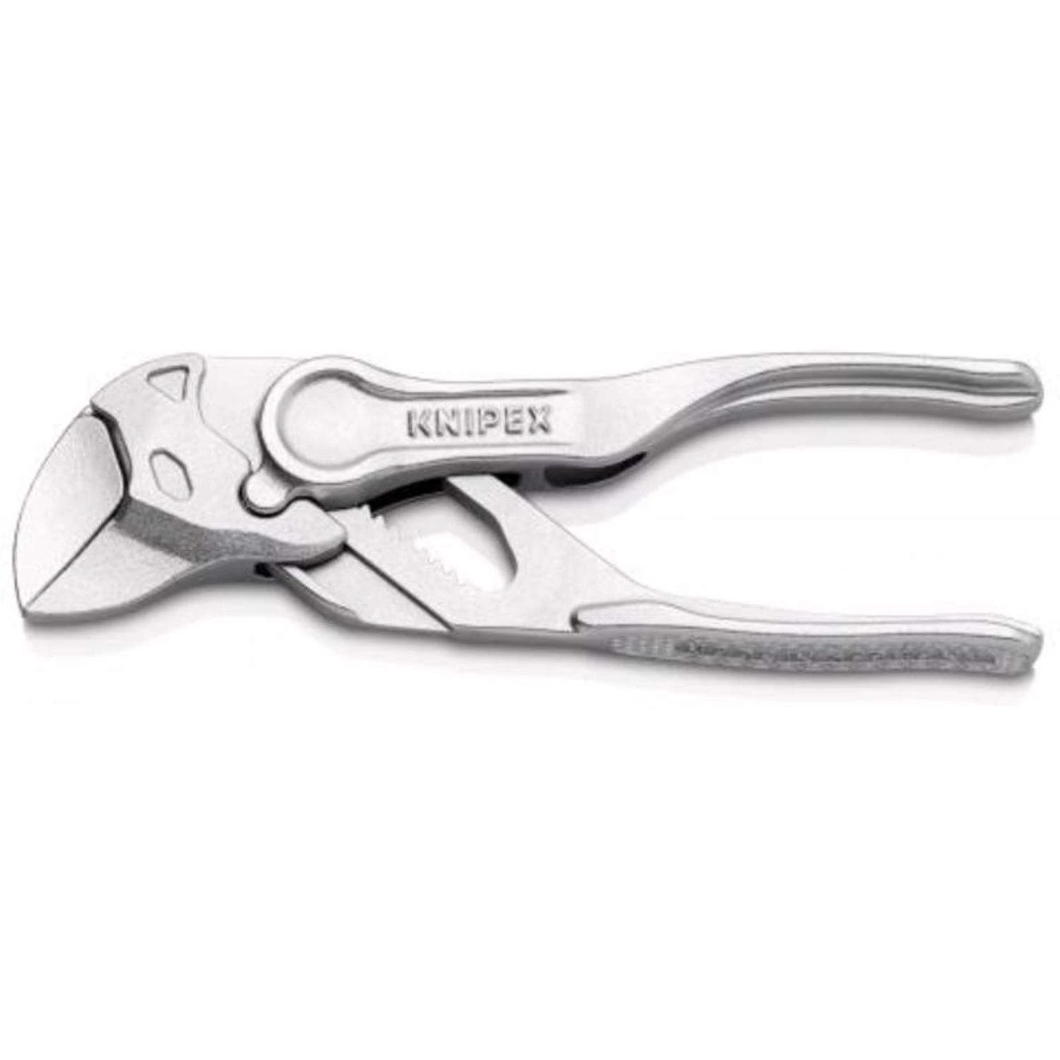 The smallest Knipex pliers wrench XS replaces the need for sets of metric and imperial spanners smooth jaws for damage free installation of plated fittings – working directly on chrome! adjustable tightening tool also excellent for gripping, holding, pressing and bending workpieces zero backlash jaw pressure prevents damage to edges of sensitive components parallel jaws give a more solid grip; its design allows flexible adjustment of all widths up to the specified maximum size reliable catching of the hinge bolt: no unintentional shifting the ratchet type principle allows quick and easy tightening and release of all bolted connections smooth gripping surfaces.Optimum accessibility, even in confined spacesParticularly compact design, very slim headFine adjustment with 10 adjustment positionsPinch guard prevents operators’ fingers being pinchedVersatile areas of application – precision engineering, plumbing, an essential part of any bicycle or motorcycle toolkit and model making