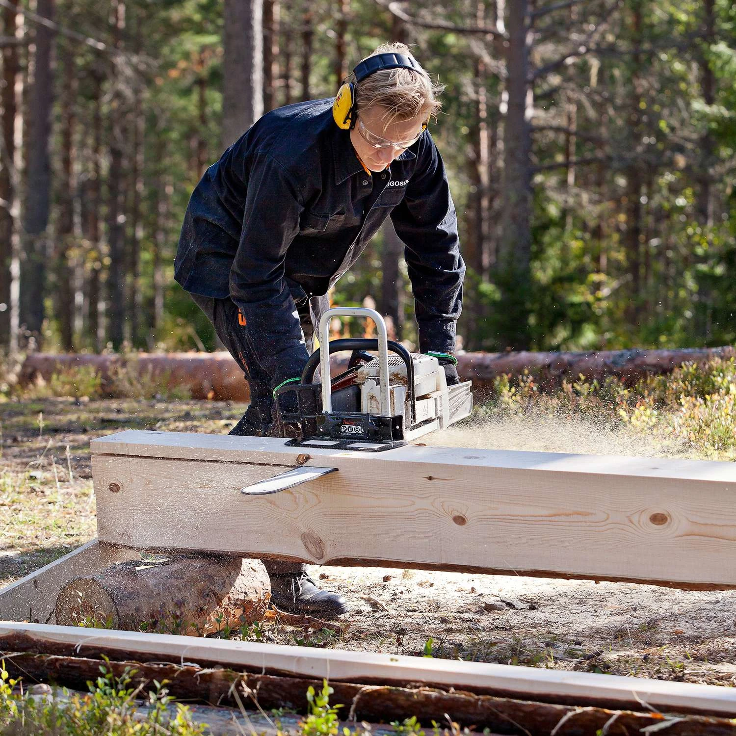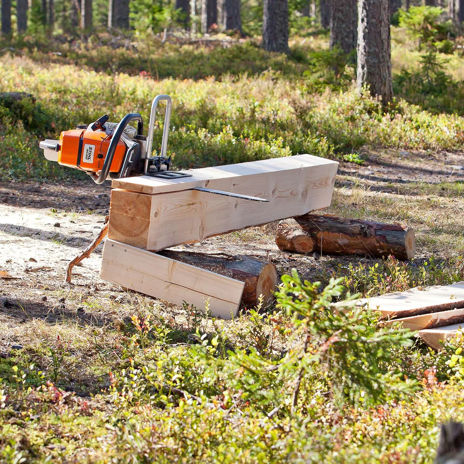 Turn almost any chainsaw into your own personal and portable sawmill! The Smart-Timberjig allows you to cut precision boards and planks from tree where they lay.Patented hand-held sawmill of top qualityThe Timberjig attaches to most chainsaws with a two bar bolts and 4.4 horse powerGo from log to lumber in fieldErgonomically correct