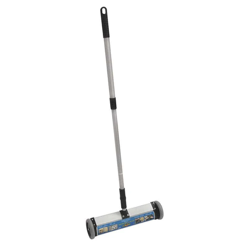 Save money and prevent injuries. Easy and fast way to collect large quantities of metal debris from floors, walkways and work areas, keeping them safe and clean. For home, shop, yard and garage use. Permanent magnetism guaranteed. More About Ceramic Magnets: Our hard ceramic ferrite magnets are composed of iron oxide and barium or strontium carbonate. Ceramic magnets exhibit relatively good holding strength for their price, making them a popular choice for many consumer, commercial and technical applications.Hundreds of uses sporting, household, industrial and commercialPush-type magnetic mini sweeper with release13″ Sweeping WidthPowerful and economicLightweight, yet durable aluminum housingClear collected debris with quick-release mechanismRetractable handle for easy storage and transportationPermanent magnetism guaranteedGreat for clean up around home, shop, yard, office and garageIdeal for keeping work areas debris free