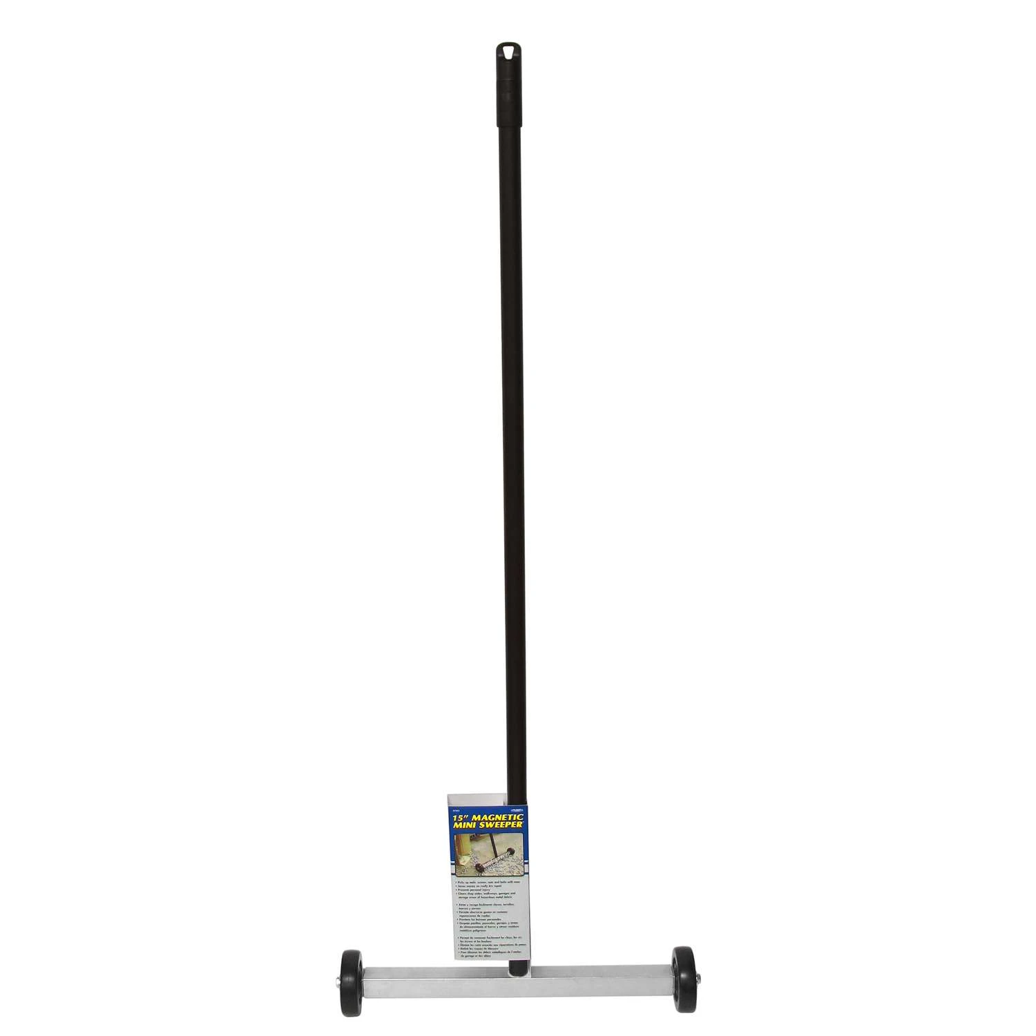 Trust Master Magnetics to bring you great products every time. Master Magnetics 14.5″ Magnetic Mini Sweeper with Header. Perfect for a variety of cleaning applications Ideal for reaching under vehicles, workbenches, tables and more to pick up nails, screws, nuts and scrap metal Durable and easily cleared of debris with shop towel or glove Lightweight aluminum housing 3″ diameter wheels 41″ handle 14.5″ header For home, shop, yard and garage use Picks up nails, screws, paper clips, tacks and other small ferrous metal objects.Push-type magnetic mini sweeperLightweight, yet durable aluminum housingPowerful and economicHundreds of uses sporting, household, industrial and commercialClear collected debris from sweeper with work gloves or heavy shop towelRemove handle for easy storage and transportationIdeal for keeping work areas debris free