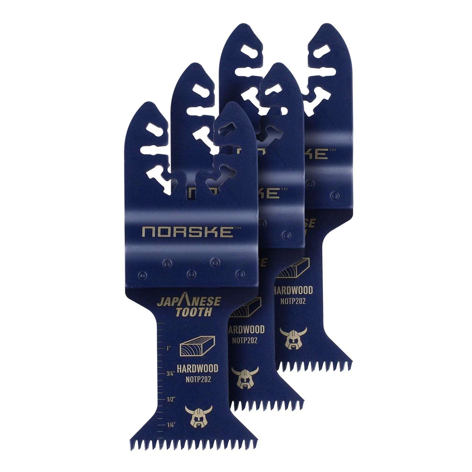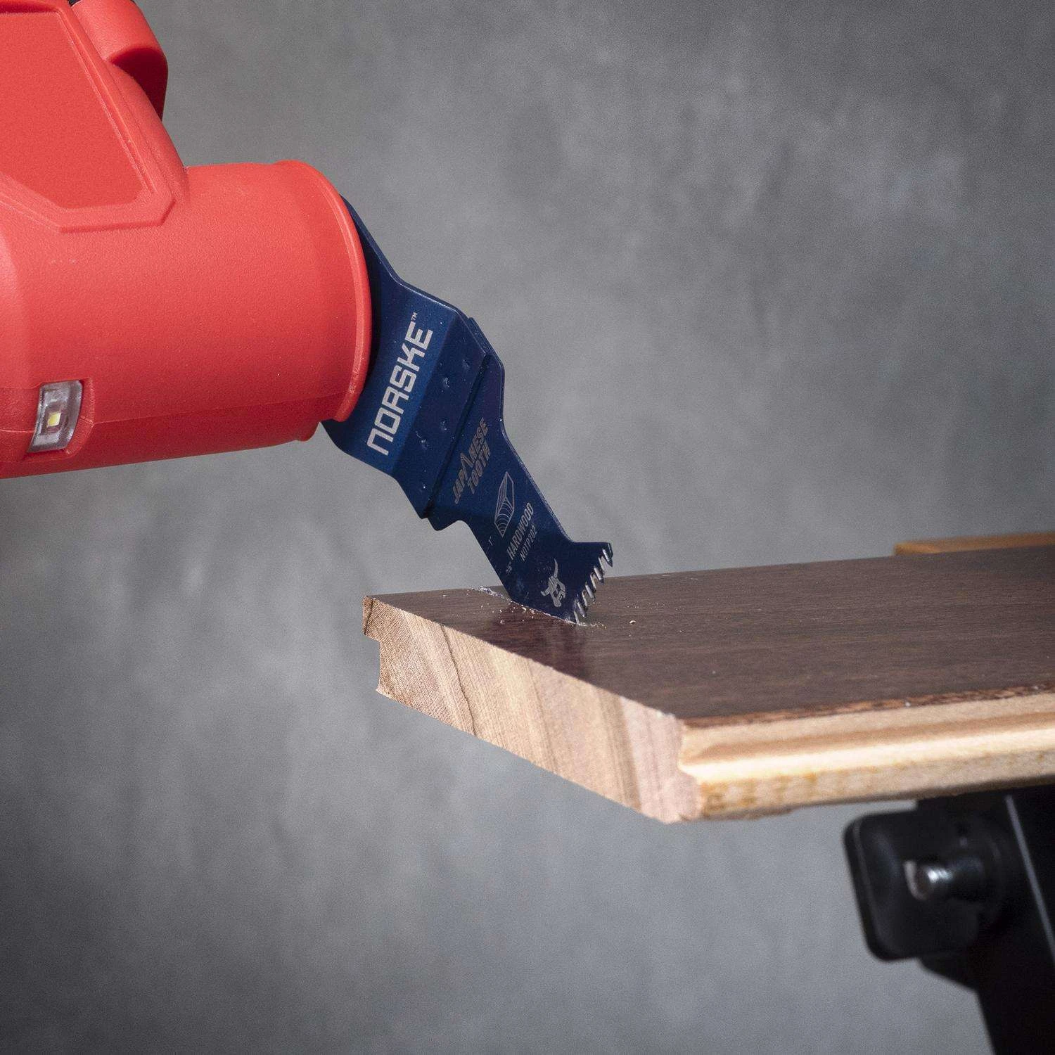 Norske Japanese tooth wood flush cut blades are optimized for cordless cutting and maximum battery efficiency. More cuts per charge. Anti kickback blade design fror increased safety, laser cut body with anti vibration and expansion slots. This fine wood finishing blade is specially designed to meet the demands of professional cabinet makers and trim carpenters. Uni-Fit universal arbor allows for seamless use with all major brands of oscillating multi-tools on the market, such as Milwaukee, Ridgid, Ryobi, Bosch, Craftsman, DeWalt, Dremel, Fein and 30+ more.Aggressive triple-ground Japanese tooth design for fast, clean, and precise cuts in hardwoodsCut-away blade body shape for fast plunge cutsBi-Metal with hardened teeth for extended blade lifeUnifit design fits most non-starlock type brands and models
