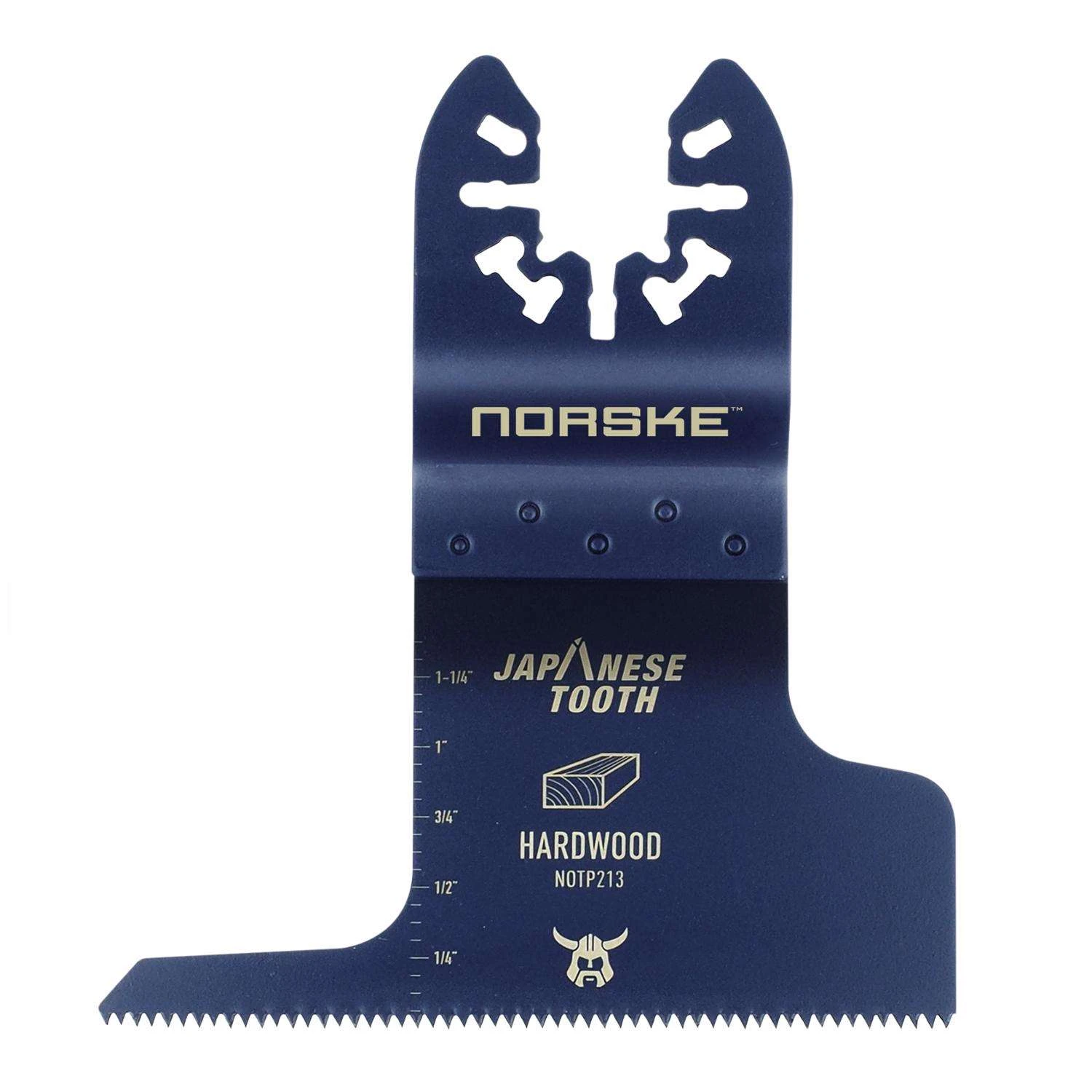 Norske Japanese tooth wood flush cut blades are optimized for cordless cutting and maximum battery efficiency. More cuts per charge. Anti kickback blade design fror increased safety, laser cut body with anti vibration and expansion slots. This fine wood finishing blade is specially designed to meet the demands of professional cabinet makers and trim carpenters. Uni-Fit universal arbor allows for seamless use with all major brands of oscillating multi-tools on the market, such as Milwaukee, Ridgid, Ryobi, Bosch, Craftsman, DeWalt, Dremel, Fein and 30+ more.Aggressive triple-ground Japanese tooth design for fast, clean and precise cuts in hardwoodsExtra-wide 3 in. blade design is ideal for long and straight flush cuts and fast material removalUnifit design fits most non-starlock type brands and models
