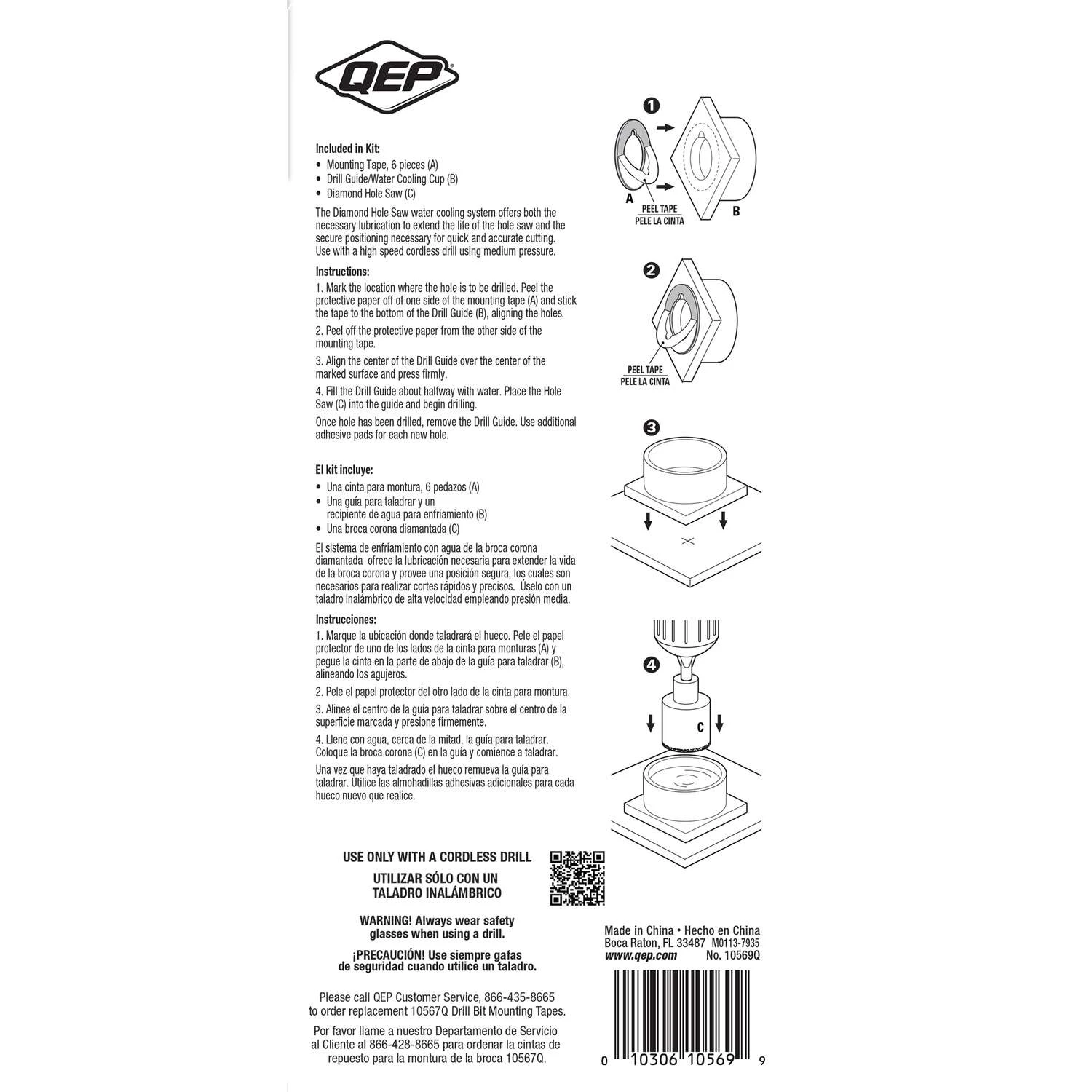 The QEP 1-3/8 in. Tile Hole Saw is a good choice for faucet, pipe and shower head installations. This hole saw features a durable diamond grit edge, for faster cuts, less dust and less chipping. Use when installing bathroom fixtures on marble, granite, ceramic and porcelain tiles.For cutting 1-3/8 inch diameter holes in glass, ceramic, marble and graniteSpecial diamond grit edge for faster smoother cutsIdeal for faucet, pipe and showerhead installationsCan be used on any type of hand drill, except hammer drillsIncluded drill guide and water cooling cup easily supplies water to drill bit (use wet-only)Fits standard 1/2 inch or 3/8 inch drill chucks