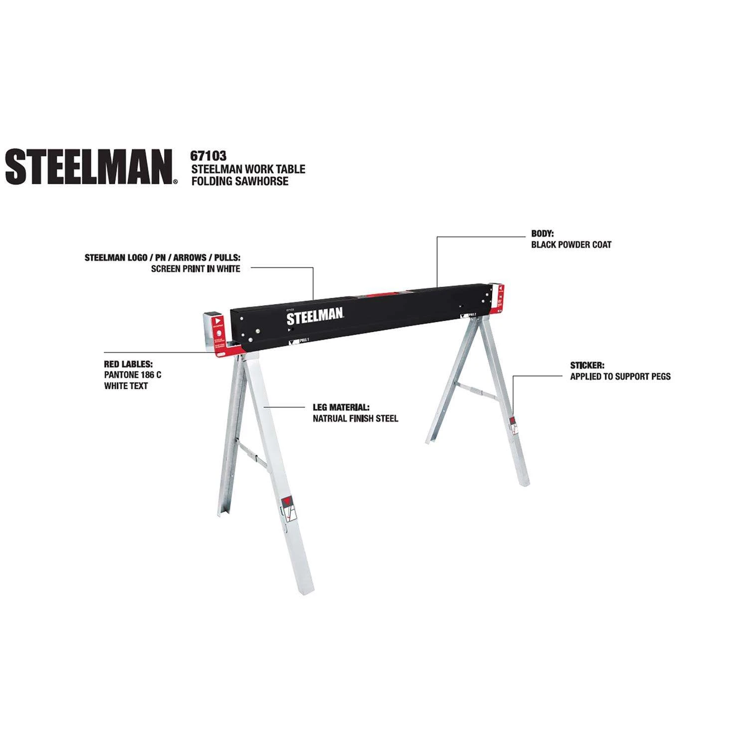 Steelman 30 In. H X 47 In. W X 22 In. D Folding Sawhorse 1100 Lb. Cap. 1 Pc