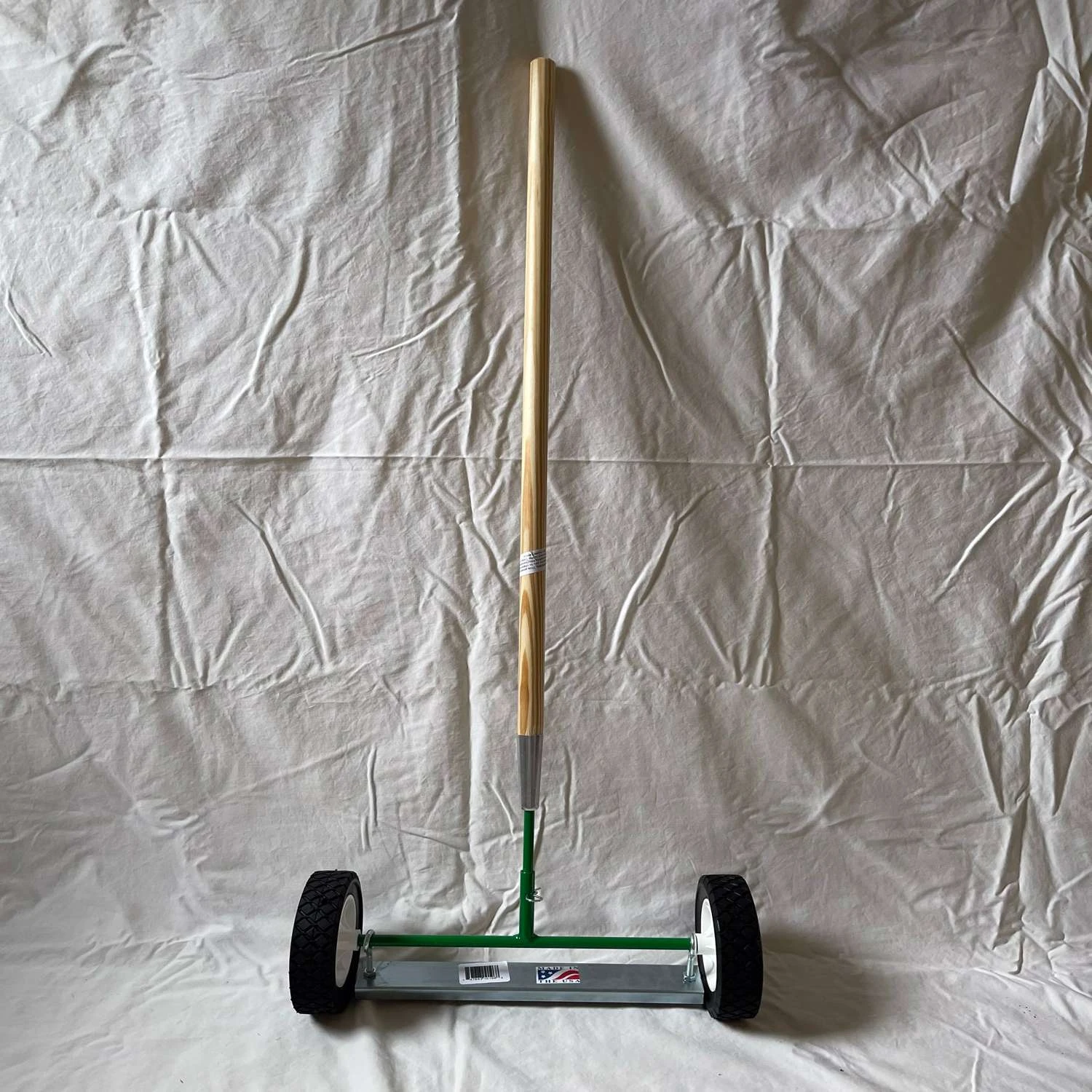 The Attractor 12 in. Mini Sweeper is a bar sweeper magnet on wheels that allows the customer to retrieve lost metal items such as nails, Staples, etc. The 46 in. overall length allows a no stoop sweep of metal objects. The Attractor 12 in. Mini Sweeper saves tire blow-outs and leaks by retrieving lost metals otherwise unseen from shops, driveways and Grassy Areas. The bar magnet hangs on the axle allowing it to swing when coming in contact with a rock, clod or high spot so debris will not be brushed off.6 in. wheels allow for a minimum clearance and easy rolling through heavy debrisBar sweeper magnet has 150 lbs. of pull allowing for pickup of larger itemsSweeper comes partially assembled at the proper height but can be adjusted to the customer’s preference