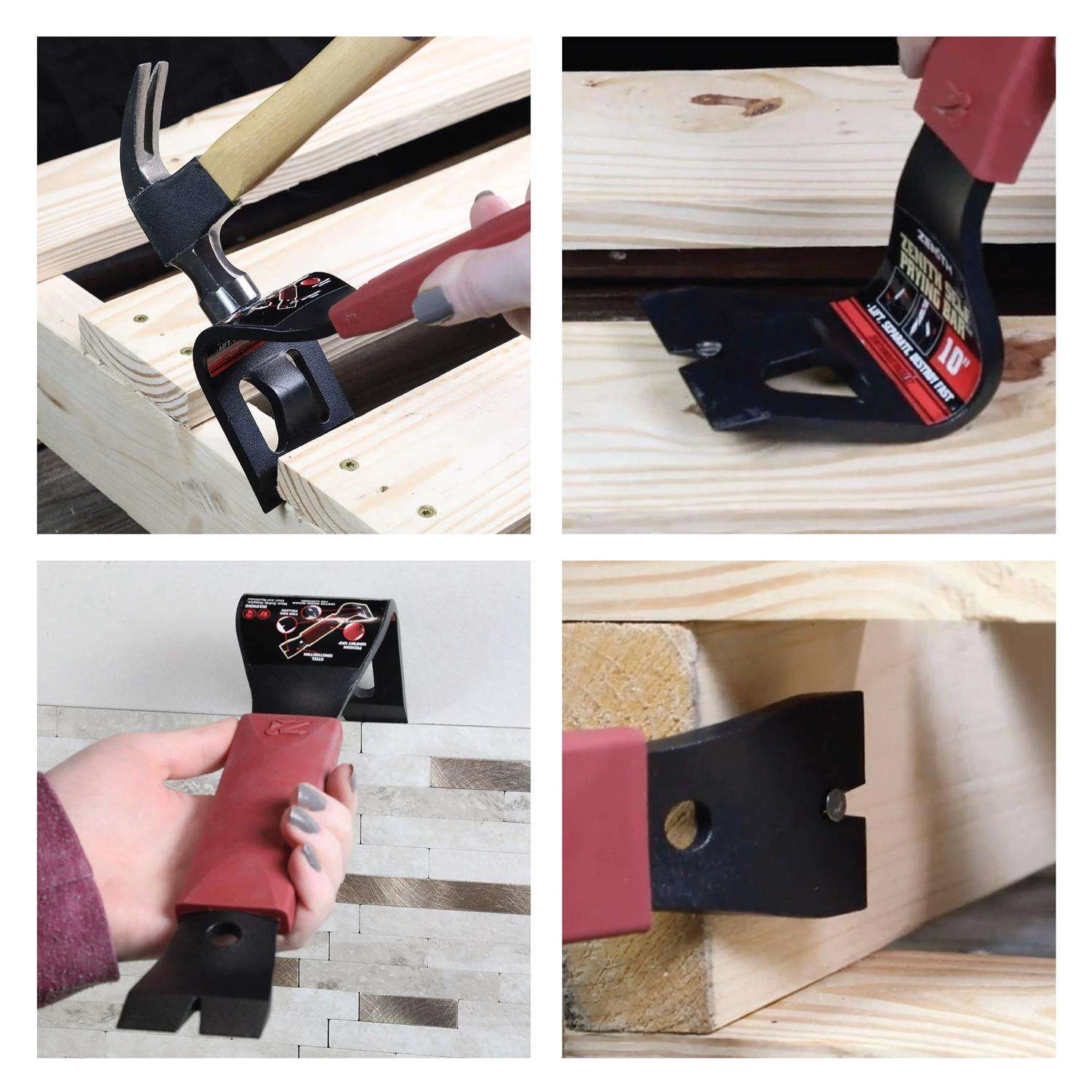 The Zenith 10″ Self Pry Prying Bar is a dynamic, patent-pending tool from the makers of the Trim Puller. The Zenith 10″ Self Prying Pry Bar lets you Save It or Wreck-It or both, fast saving you time and money. The Zenith Self-Prying Pro Bar Tool makes it perfect for working in cramped spaces where there might not be enough room for a larger tool. The Pry Bar has 2 integrated precision nail removers, one located in the 90-angled face and the other in the tail. If destruction, demolition, and salvage are your aim the 10″ Self Prying Pry Bar is the best multi-tool you need to Lift It, Separate It, Destroy It, fast. So Save It or Wreck-It, the 10″ Self Prying Pry Bar lets you do it fast. The Self Prying Pry-Bar functions as the best version of the Trim Puller as it does all the work of a flat pry bar, wrecking bar, or claw and is great for smaller DIY projects by safely removing baseboards, crown molding, door casings, chair railing, decorative panel and even nailed or glued countertop.The tool is designed with a lighter weight and compact size compared to its older brotherThe unique self-prying action utilizes the strength of the closed wedge to easily separate anything with reduced effortA contoured grip provides increased user comfort and its robust 48Rc heat treated steel construction provides life time durability
